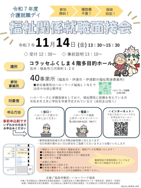 お知らせ ホーム > お知らせ > 本部事務局 > 11月14日開催「令和7年度介護就職デイ」に参加いたします! 11月14日開催「令和7年度介護就職デイ」に参加いたします! 2025/10/28 令和7年度介護就職デイ「福祉関係就職面接会」に参加いたします! 福祉関係に興味を持っている方、就職を考えている方、たくさんの方にお会いできることを、楽しみにしております! カテゴリー 本部事務局(59) 土湯宝生園(5) アリヴァーレ宝生園(4) ほのぼの宝生園(0) 宝寿 木村屋(0) まちなか宝生園(1) 最近の投稿 11月14日開催「令和7年度介護就職デイ」に参加いたします! ケアマネージャーのリクルート情報を更新いたしました 多宝会新聞114号を掲載いたしました 「カフェ たから」開催! 「いきいきサロン」開催します! 月別投稿一覧 月を選択 2025年10月 (1) 2025年9月 (4) 2025年7月 (3) 2025年6月 (1) 2025年5月 (2) 2025年4月 (2) 2025年2月 (1) 2024年12月 (2) 2024年11月 (5) 2024年8月 (3) 2024年7月 (1) 2024年4月 (1) 2024年2月 (3) 2023年12月 (2) 2023年11月 (1) 2023年10月 (1) 2023年9月 (1) 2023年8月 (2) 2023年7月 (2) 2023年6月 (1) 2023年5月 (2) 2023年3月 (1) 2023年2月 (2) 2023年1月 (4) 2022年11月 (2) 2022年10月 (2) 2022年7月 (2) 2022年6月 (2) 2022年5月 (2) 2022年3月 (1) 2021年12月 (3) 2021年11月 (2) 2021年10月 (1) 2021年8月 (1) 2021年7月 (2) 2021年2月 (1)